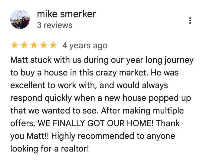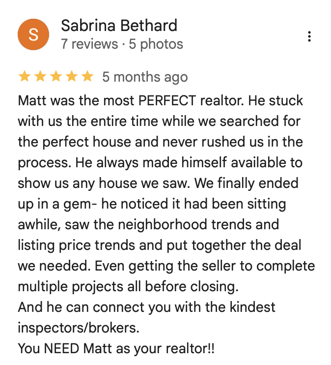 I deal with a variety of clients all in different places in life. Some buy the first home they see. Some are early on in the process and just want to get a feel for what’s out there. They might not buy this year but want to look. We work off of your timeline. There is never any pressure from our end to do anything. We show you the home and get you the information you need to make an informed decision when you are ready! You’ll see that reflected in my Client Reviews!